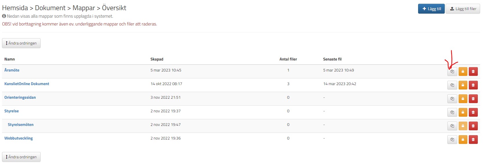 6. Ha med en funktion där man lätt kan kopiera sökvägen till specifikt dokument så man lätt kan få en URL att klistra in i en nyhet eller sida på hemsidan.